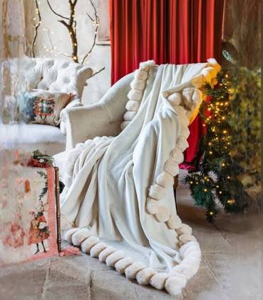 Blanc Mariclo Plaid con Pom Poms Velluto Collection Avorio 280 gsm 140×170 cm