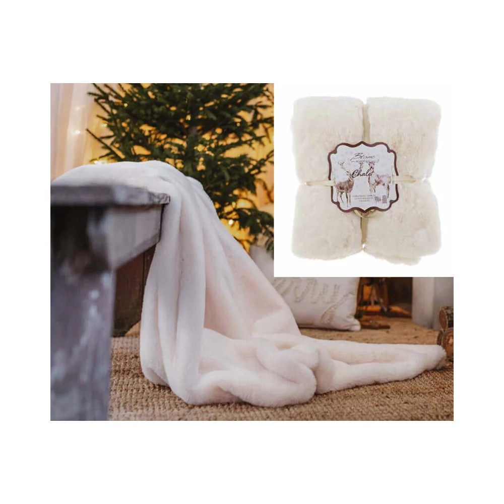 BLANC MARICLO' Coperta plaid natalizio bianco in ecopelliccia "Chalet" 660 gsm 127x152 cm