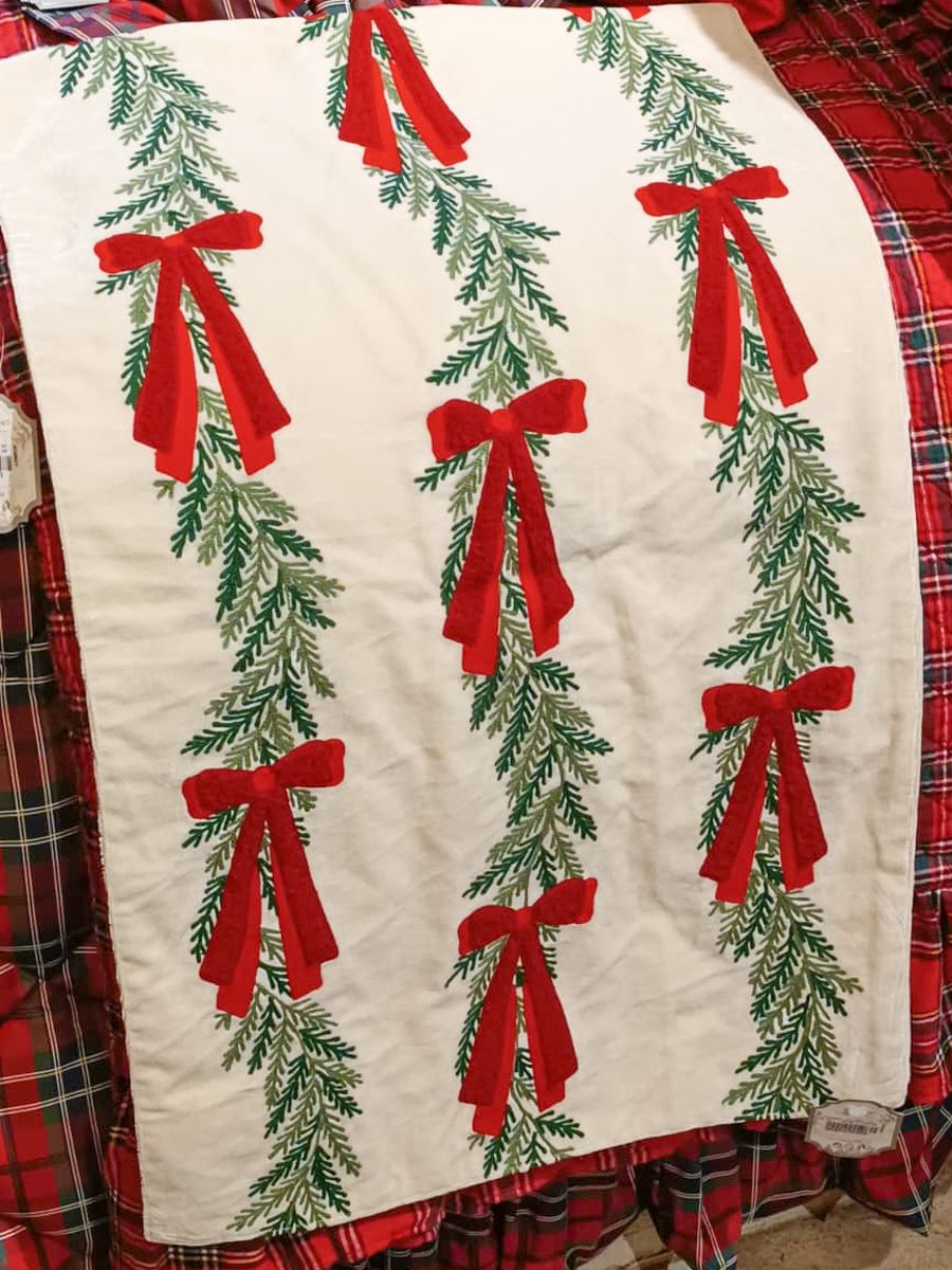 Porta la magia del Natale sulla tua tavola con il runner Blanc Mariclò in velluto di cotone. Morbido al tatto, è impreziosito da raffinati ricami di rami verdi e festosi fiocchi rossi, perfetti per creare un’atmosfera calda e accogliente. Con le sue dimensioni di 45x150 cm, si adatta elegantemente a tavoli da pranzo o buffet, esaltando mise en place shabby chic o country natalizie. Abbinalo a tovaglie tinta unita e completalo con piatti in porcellana e candele per un allestimento unico e raffinato.
