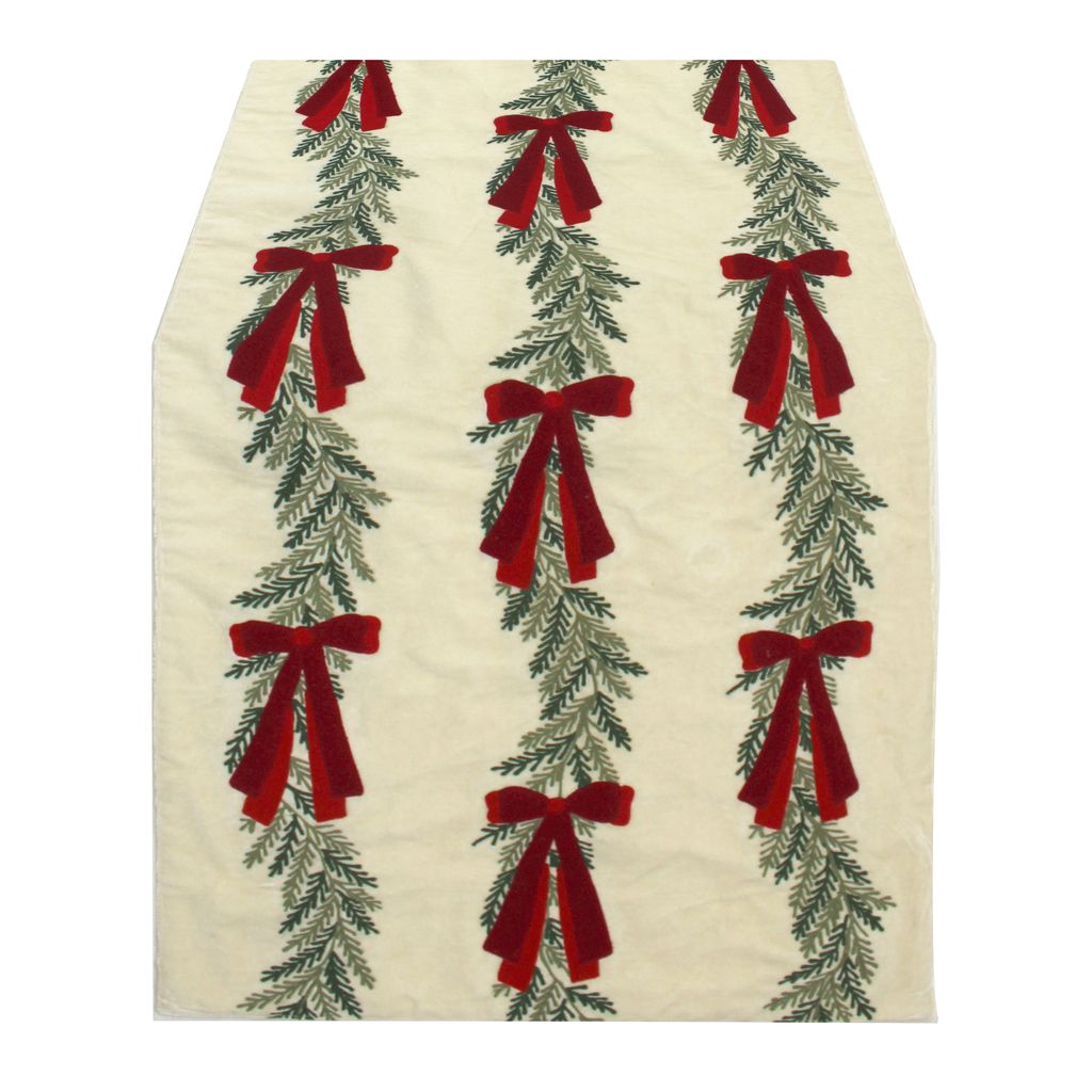 Blanc Mariclo runner/centrotavola in velluto con ricami e fiocchi rossi cm.45x150