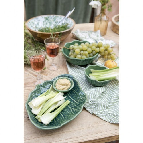 Valorizza la tua tavola con questo vassoio decorativo in ceramica verde a forma di foglia, arricchito da una ciotolina centrale perfetta per salse o piccoli dettagli. Ideale per creare allestimenti tematici e mise en place botaniche, unisce estetica ed eleganza in un unico pezzo. Dalla collezione ORTO IN CERAMICA, offre qualità artigianale e stile raffinato nelle dimensioni 36 x 5 x 36 cm. Un dettaglio scenografico che cattura l’attenzione e trasforma ogni occasione in un’esperienza unica.