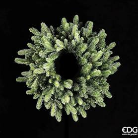 Corona Merano Verde - Diametro 80 cm - EDG Enzo De Gasperi. La Corona Merano Verde di EDG, con un diametro di 60 cm e 150 tips, è realizzata in una combinazione di materiali PE e PVC di alta qualità, che le conferiscono un effetto "natural touch" autentico. I suoi fitti rami verde pino, curati nei minimi dettagli, offrono un aspetto realistico e vibrante, ideale per portare l'atmosfera natalizia in ogni ambiente. Questa corona è pensata per durare nel tempo, grazie alla resistenza dei materiali e alla cura artigianale impiegata nella sua realizzazione