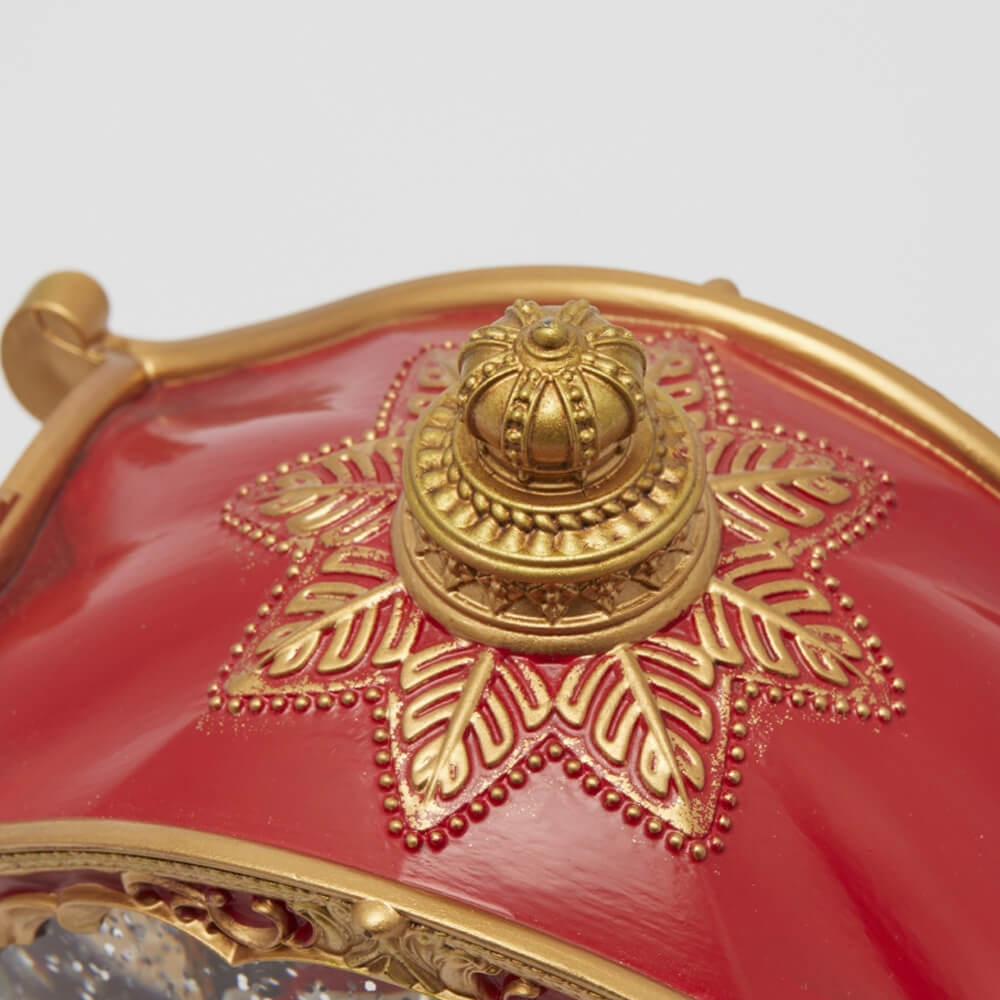 Scocca in resina rifinita a mano: colori brillanti, dettagli dorati, finte ghirlande e fiocchi