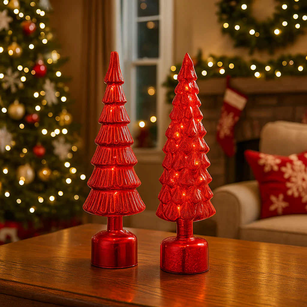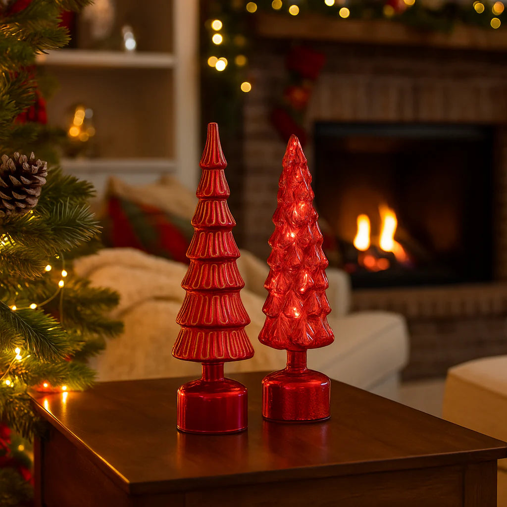 Realizzato in raffinato vetro rosso, questo albero decorativo alto 35 cm unisce eleganza e innovazione grazie alla sua silhouette twist che riflette la luce con straordinaria brillantezza.