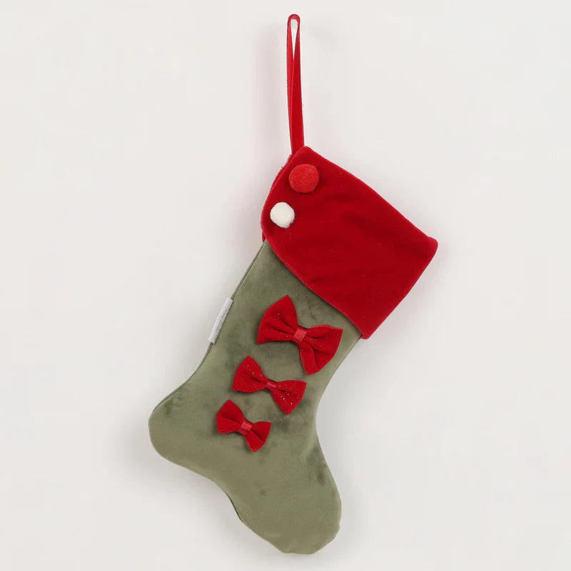 FIORI DI LENA Calza Natalizia Verde e Rossa In Velluto Con Fiocchetti h43
