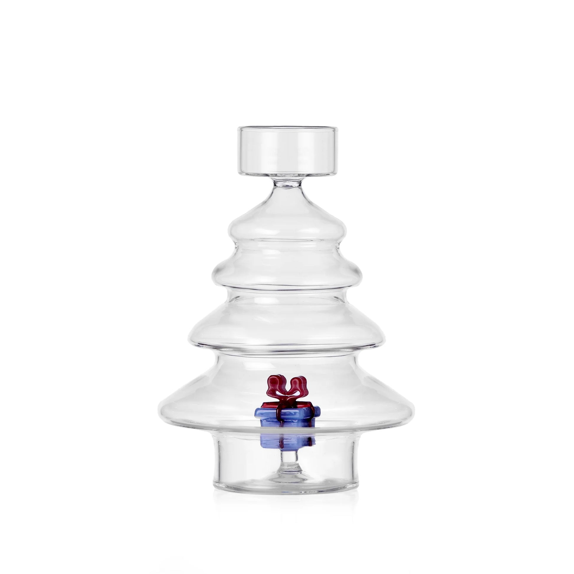 Il porta tealight Christmas Tales di Ichendorf Milano, realizzato a mano in vetro borosilicato soffiato, è un’elegante decorazione natalizia. La sua forma ad albero di Natale racchiude un regalo blu con fiocco rosso, simbolo di magia e festa. Perfetto per illuminare con una luce calda e avvolgente tavoli e mensole, è un dettaglio raffinato che trasforma ogni ambiente in un angolo accogliente. Un’idea regalo esclusiva per chi cerca originalità e stile nelle festività. Dimensioni: 16,5x11,5 cm.