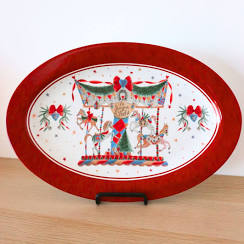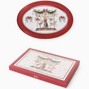 Trasforma la tua tavola natalizia con il piatto da portata Nuvole di Stoffa Giostra, un'opera di ceramica decorata che cattura l'incanto delle festività. Con le sue dimensioni generose di 35x23,5 cm, è ideale per presentare dolci, antipasti e biscotti con stile. I motivi delicati ispirati alle giostre regalano un fascino retrò e artigianale, perfetto per chi apprezza i dettagli raffinati e l'eleganza romantica. Presentato in una scatola regalo coordinata, diventa il dono perfetto per sorprendere chi ama la bellezza autentica e lo stile senza tempo.