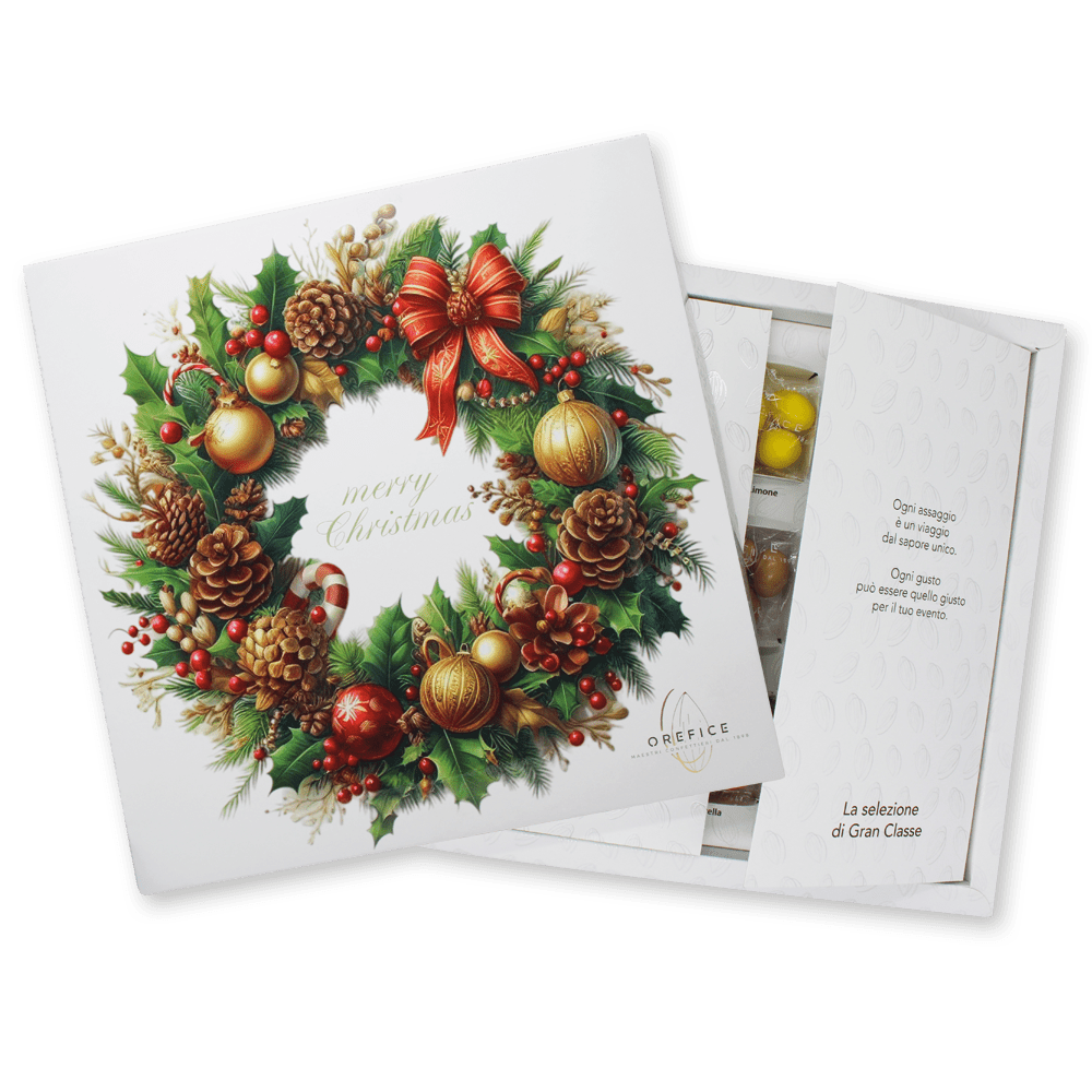 La magia del Natale racchiusa in ogni cioccolatino. La box Orefice propone un'armoniosa selezione di delizie: i classici Nudi dal cuore morbido e i celebri Bacetti, un connubio perfetto di cacao e nocciola. Con 200 grammi di puro piacere, questo cofanetto festivo è l'occasione ideale per sorprendere chi ami o concederti un momento di dolcezza durante le festività. Un regalo che parla il linguaggio universale del buon gusto.