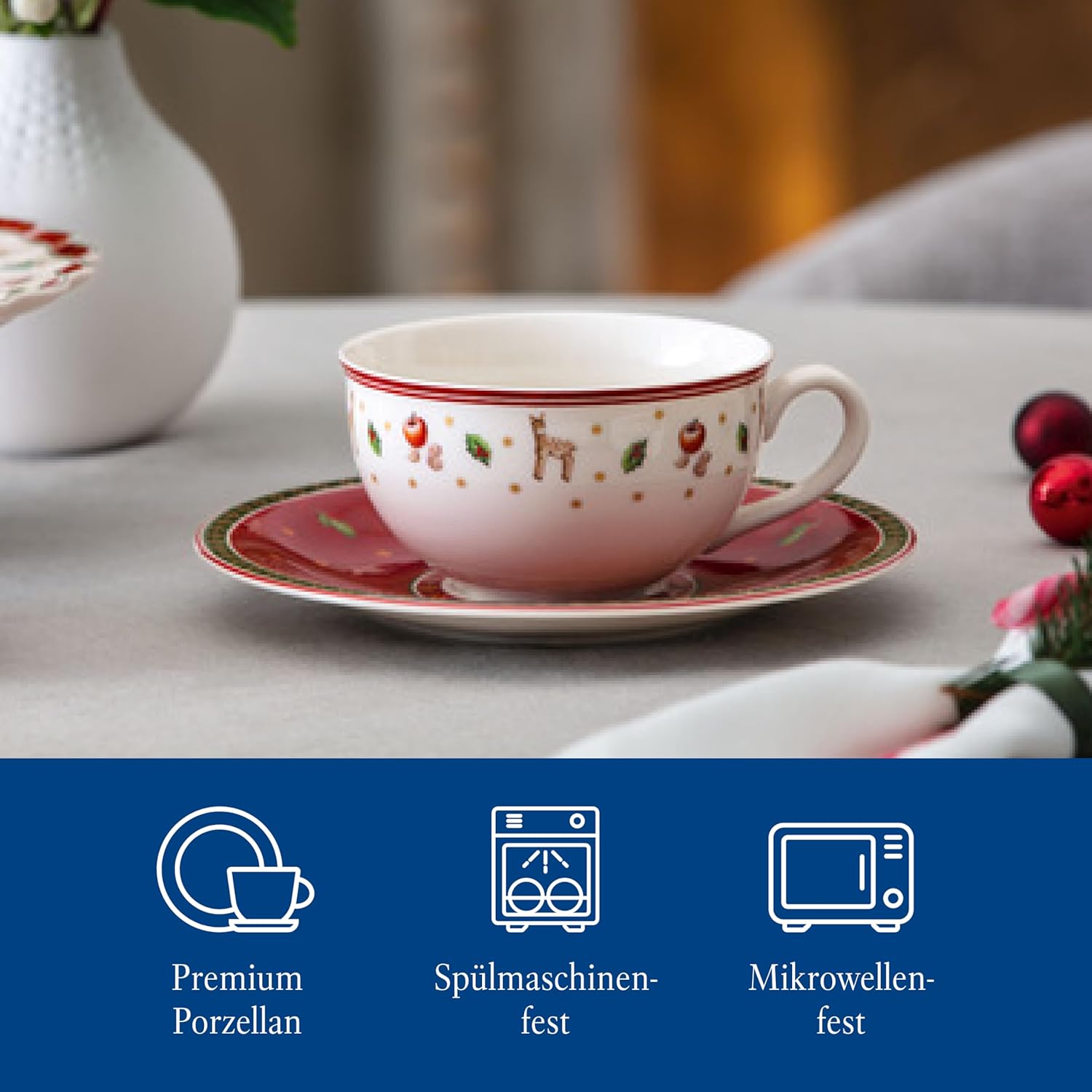 Villeroy & Boch – Toy's Delight Specials piattino per tazza da caffellatte, piccolo piatto in porcellana con motivo natalizio, 19 cm Ø,